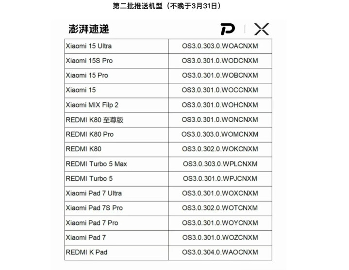 米兰 澎湃OS 3.0.300.0 推送经过更新, 各机型握续推送中