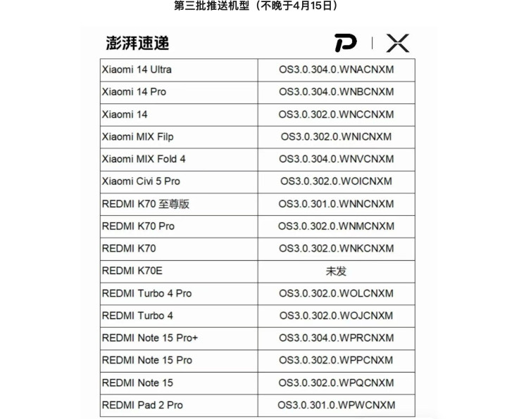 刚好,一份最新的各机型推送经落后分表流出来了。第三批的死线卡在4月15号,也即是未来;第四批则是要硬熬到4月23号。