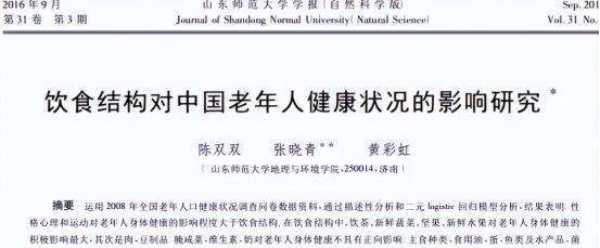 陈双双.饮食结构对中国老年东说念主健康情状的影响接洽, 山东师范大学学报(当然科学版), 2016-09-15