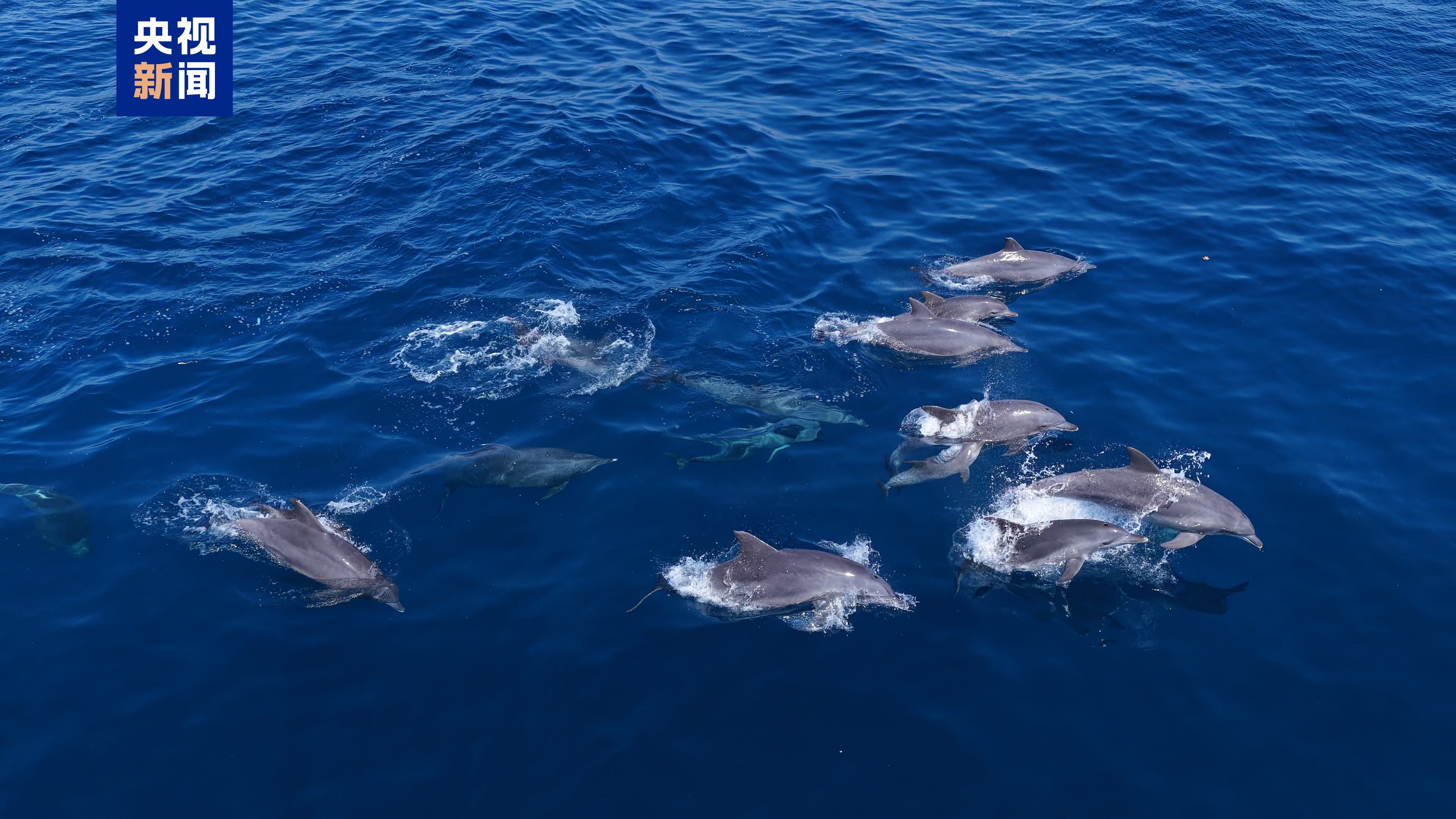 海洋中,十余只野生海豚在分解海水中联合巡游,时而长远水中追赶鱼群,时而跃出海面嬉戏,状态裁汰、活跃度高,在海域内停留近30分钟后,联合向远海逐渐游去。算作海洋生态系统健康现象的旗舰物种,海豚对栖息海域的水质、饵料丰富度、生物链完好意思性条目极高,其现身近海,恰是蜈支洲岛支配海域生态环境合手续向好最直不雅的印证。