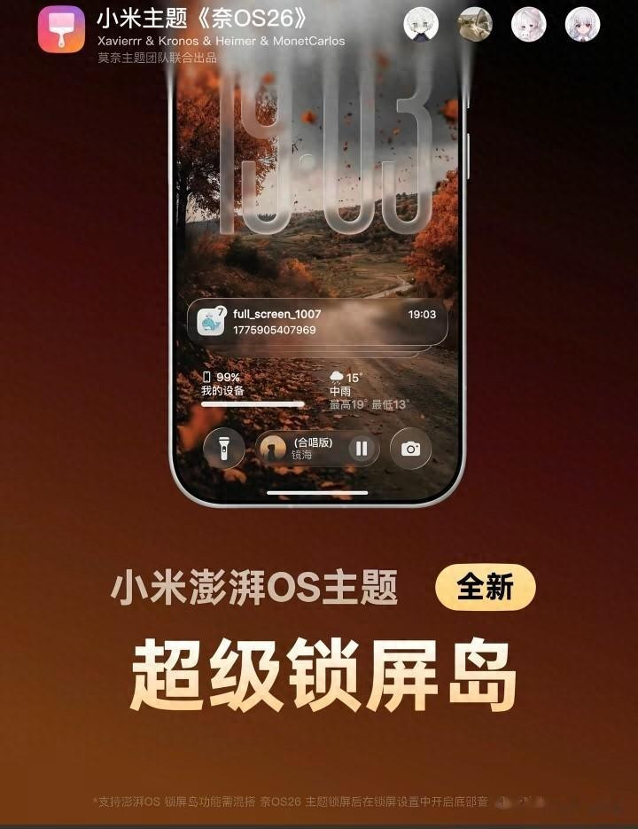 米兰 小米滂湃OS主题超等岛锁屏已发布。