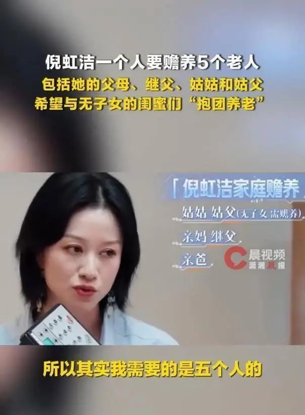 在最近的一档综艺节目中,倪虹洁从容地清晰了我方需要抚育五位老东说念主的施行。这五位老东说念主包括:亲生父母、母亲再婚后的继父,以及莫得生养子女的姑妈和姑父。这种越过传统中枢家庭限制的抚育模式,组成了一个复杂的家庭网络。