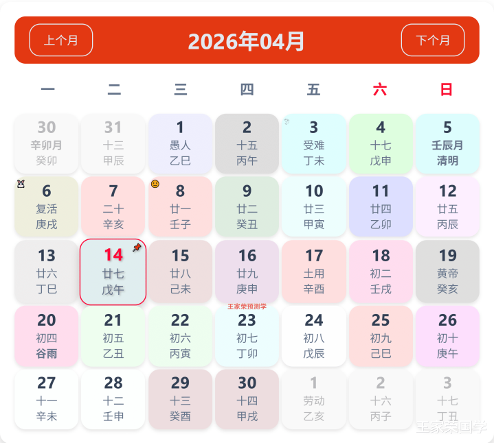 米兰体彩app 老通书看日子生肖运势查询(2026年4月14日)