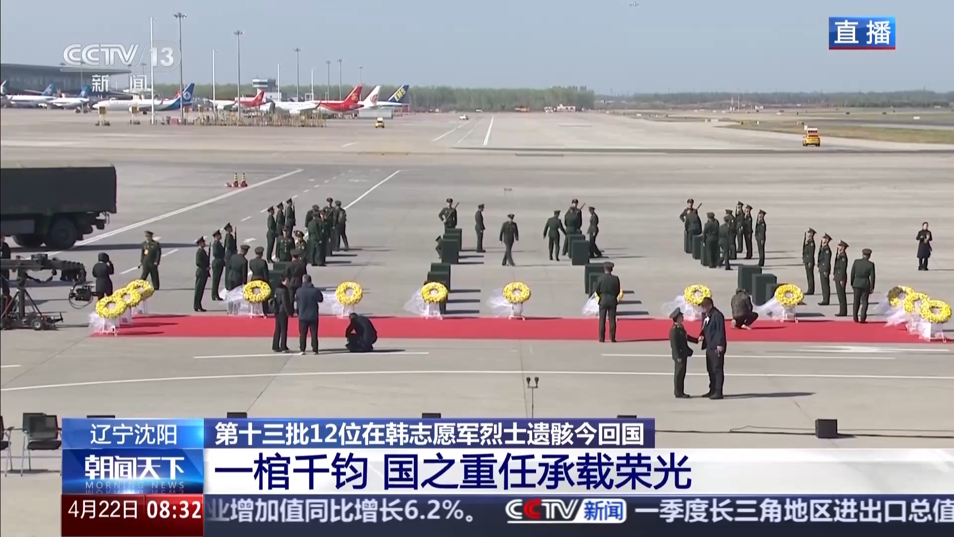 总台记者 王晓沛:我当今是在沈阳桃仙机场的停机坪,亦然接下来第十三批在韩中国东谈主民志愿军义士遗骸迎回庆典的现场,今天将有12位在韩志愿军义士遗骸偏激遗物回到故国的怀抱。