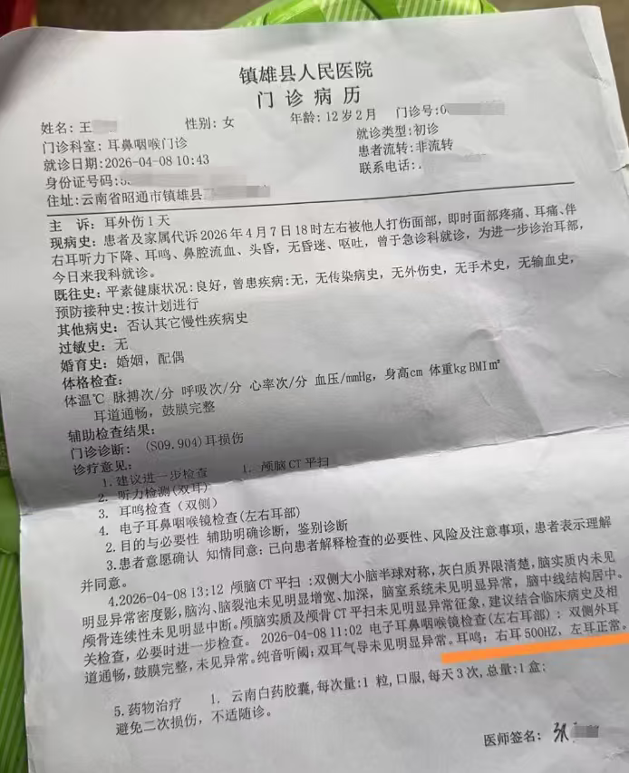 据报说念,王先生的犬子在当地一所名为“蓄菁学校”的私立学校读六年岁。4月7日晚,别称三年岁敦厚将王先生的犬子叫到办公室,申斥女孩是否给她起混名。女孩承认后,被敦厚持脸,并连扇四个耳光,“其时鼻血一下就涌出来了,目下发黑”。经病院查验,女孩被会诊为耳毁伤和右耳耳鸣。该校校长告诉记者,学生给敦厚起的混名是对敦厚的侮辱,敦厚教训学生时下手重了些。