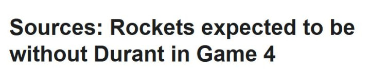 米兰 杜兰特将因伤缺战G4! 脚踝肿胀僵硬作为受限 火箭0-3落伍面对淘汰